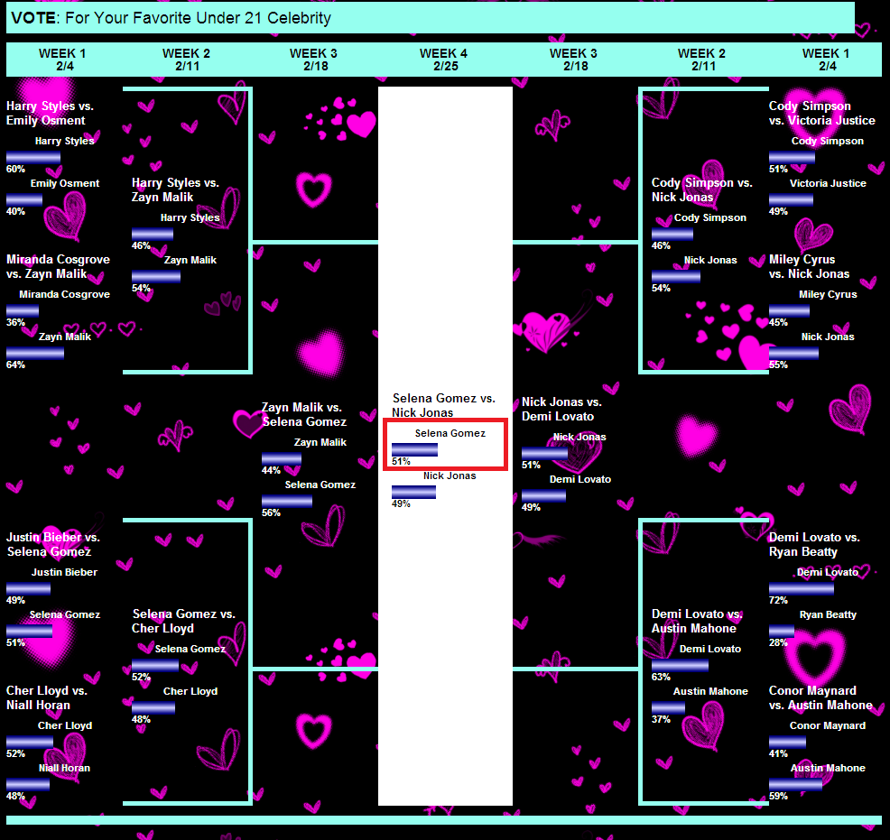 Após semanas de competição, Selena Gomez foi eleita pelos visitantes do site da rádioQ102 a enquete ‘Hottest Under 21′ (Mais ‘quente’ com menos de 21 anos). Clique na imagem abaixo para conferir todas as pessoas que ela derrotou: